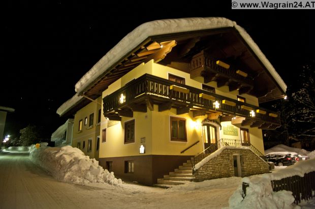 Pensionen ligger midt i ”smørhullet” Kirchboden, hvilket vil sige tæt på alt. Der er plads til 25-26 skihajer som